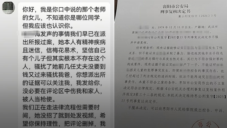 女子发帖称30年前被老师性侵产子,男婴被抱走失联,湖北襄阳警方回应